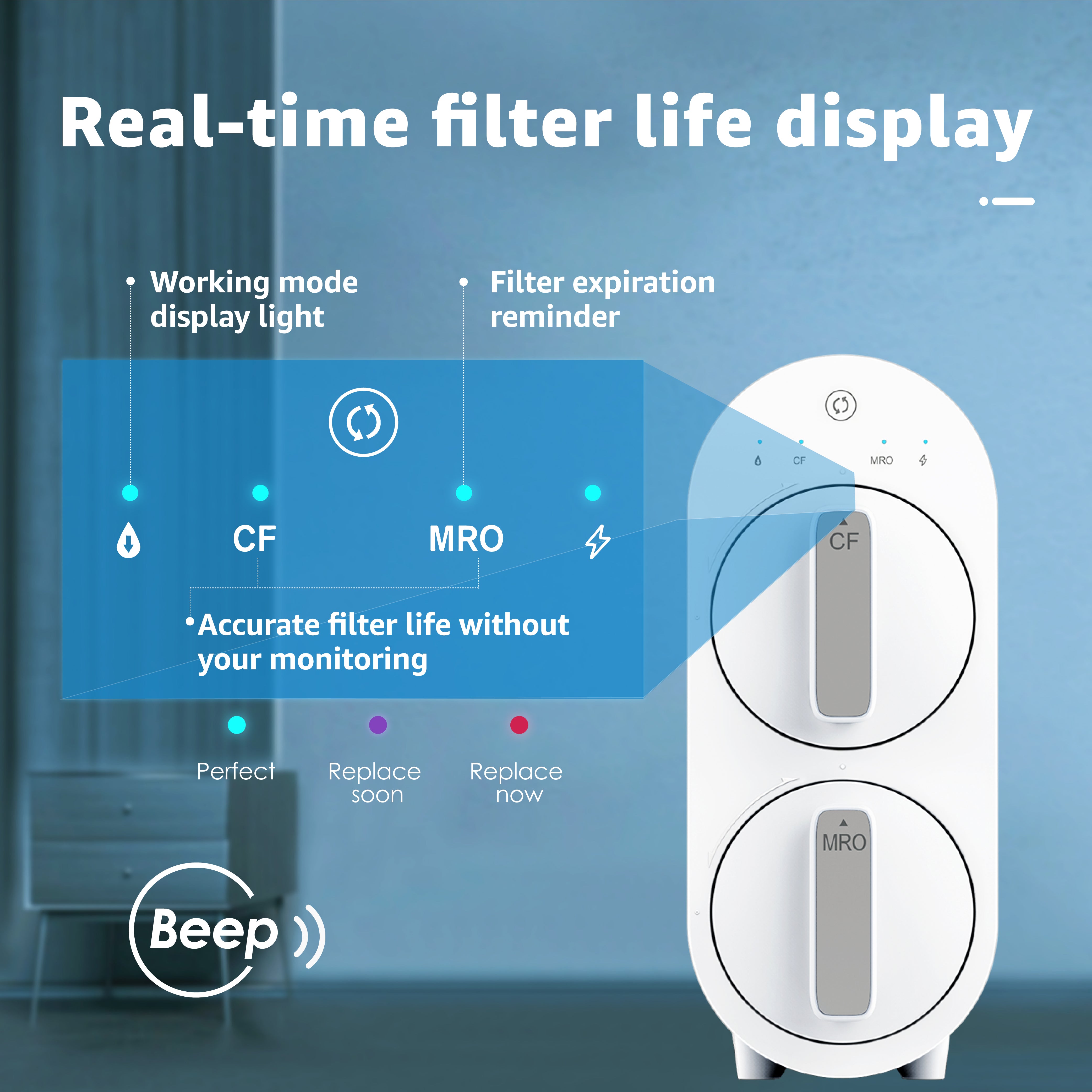 This under counter water filter system has filter life indicators, which will monitor the service life in real-time and notify you to replace the filters in advance.